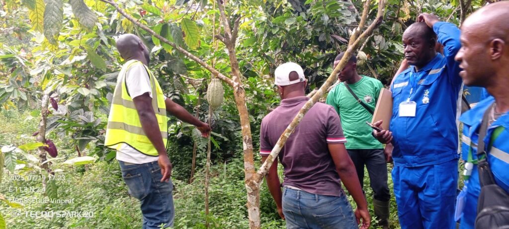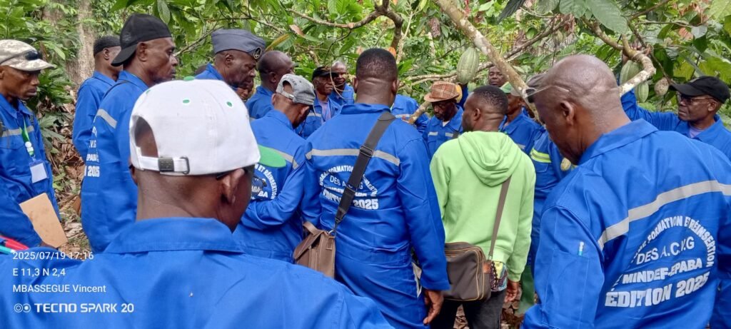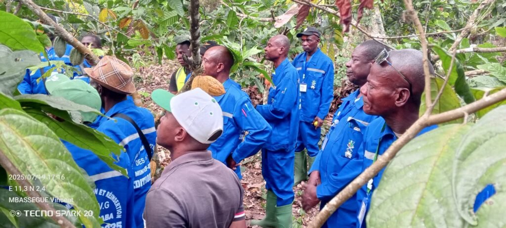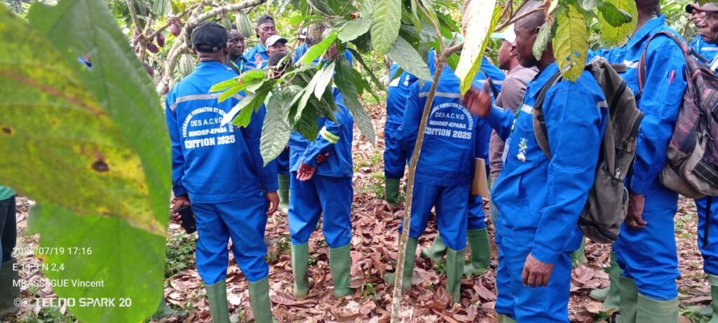 Dans le cadre de la formation des Anciens Combattants et Victimes de Guerres débutée le 15 Juillet 2025, une descente à Akam-Bitam où se trouvent les plateaux techniques de l’EPABA et une Visite de la cacaoyère d’un reférent. Il était question pour les formateurs de consolider les connaissances théoriques aux réalités du terrain.