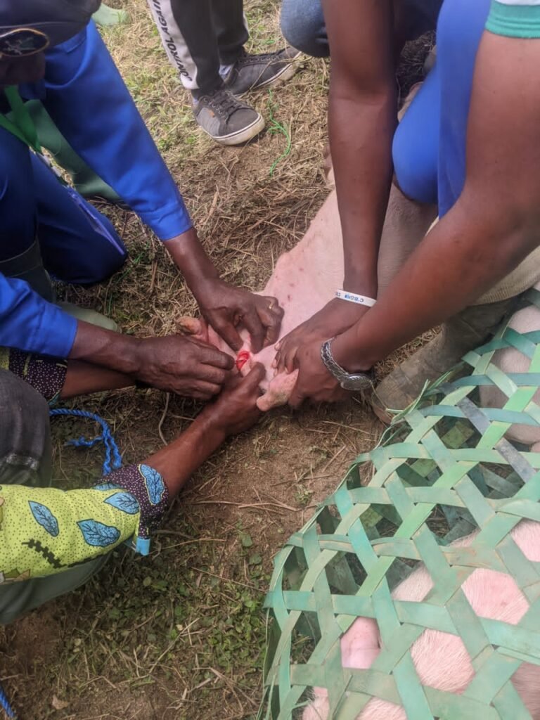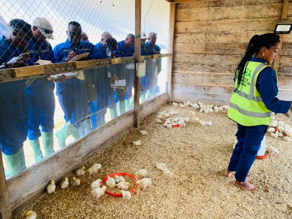 Après l’accueil par le Chef Bureau de Gestion Ateliers Pédagogiques, les différents plateaux techniques ont été tour à tour présentés par les différents responsables avec en bonus, ils ont assisté à une séance de castration des porcelets(méthode à une et deux fentes).
