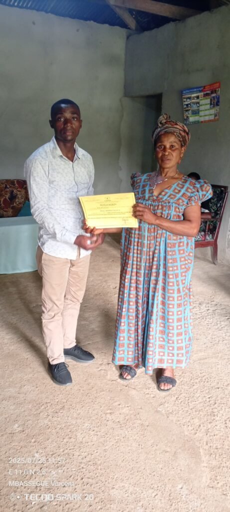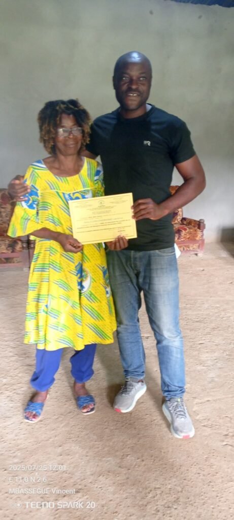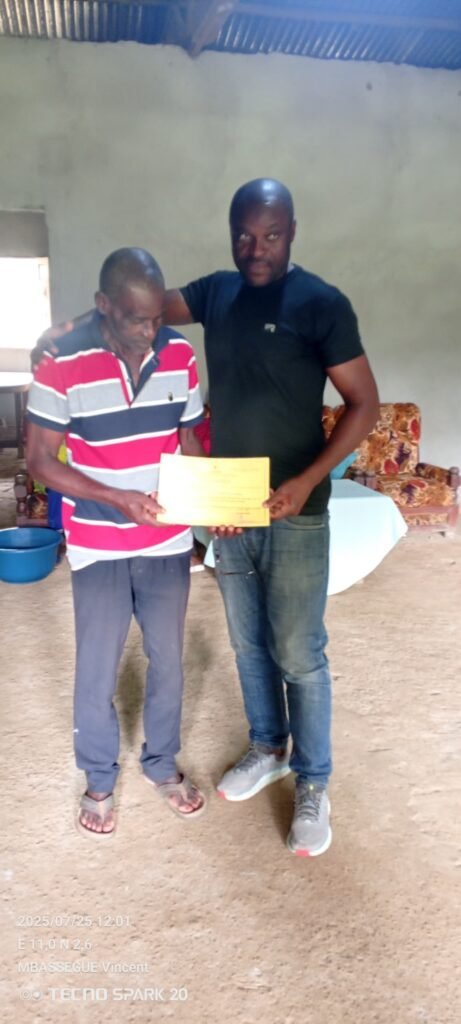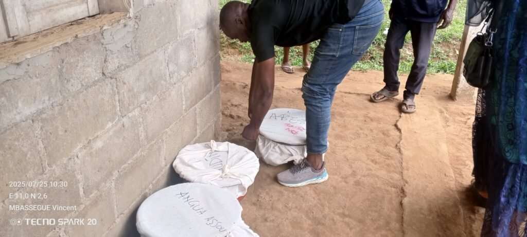 A la suite de la formation en Production des hannetons « Foss » du 18 juin 2025, une équipe de l’Ecole Pratique d’Agriculture et du Bois d’Ambam s’est à nouveau rendue dans la localité de Meyo-Centre, arrondissement d’Ambam; au domicile de la promotrice de la coopérative COOPTRACMAMEC afin d’honorer au rendez-vous pris lors de son premier passage.